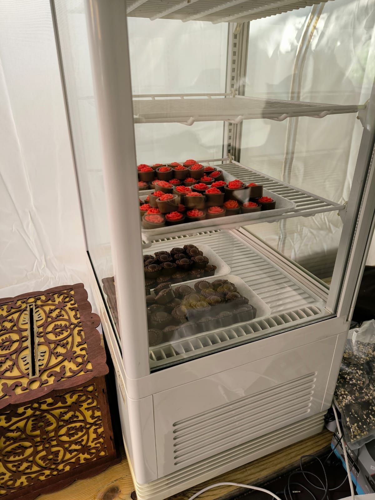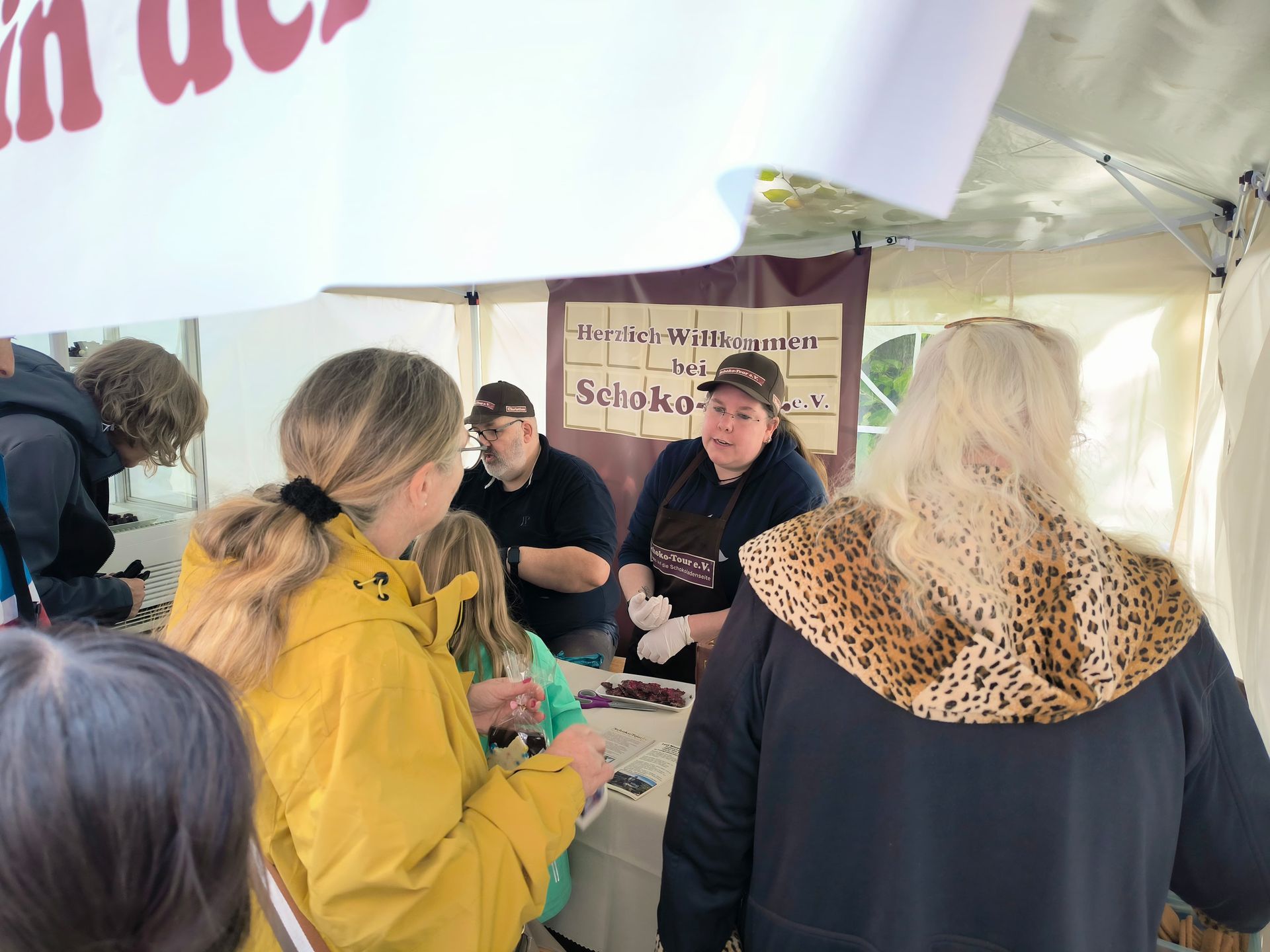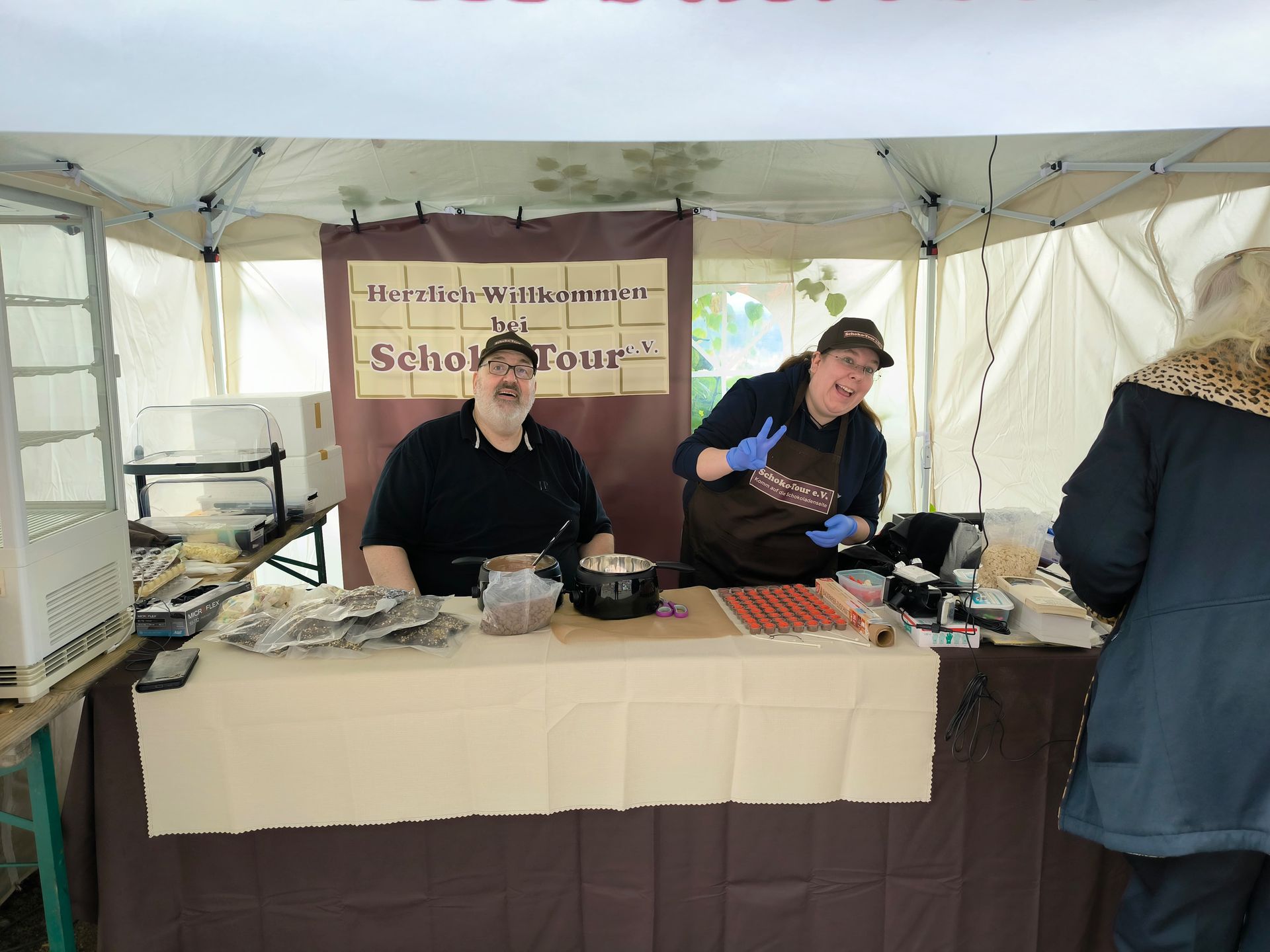 Diesmal haben wir alles ein wenig vergrößert... es wurde ein 6x3 Meter Pavillon angeschaft, den wir auch brauchten, es war schon letztes Jahr ein wenig eng. Unser Angebot diesmal ging auf die Wünsche der Gäste ein, die schon bei der Ankündigung nach veganer Schokolade gefragt haben.