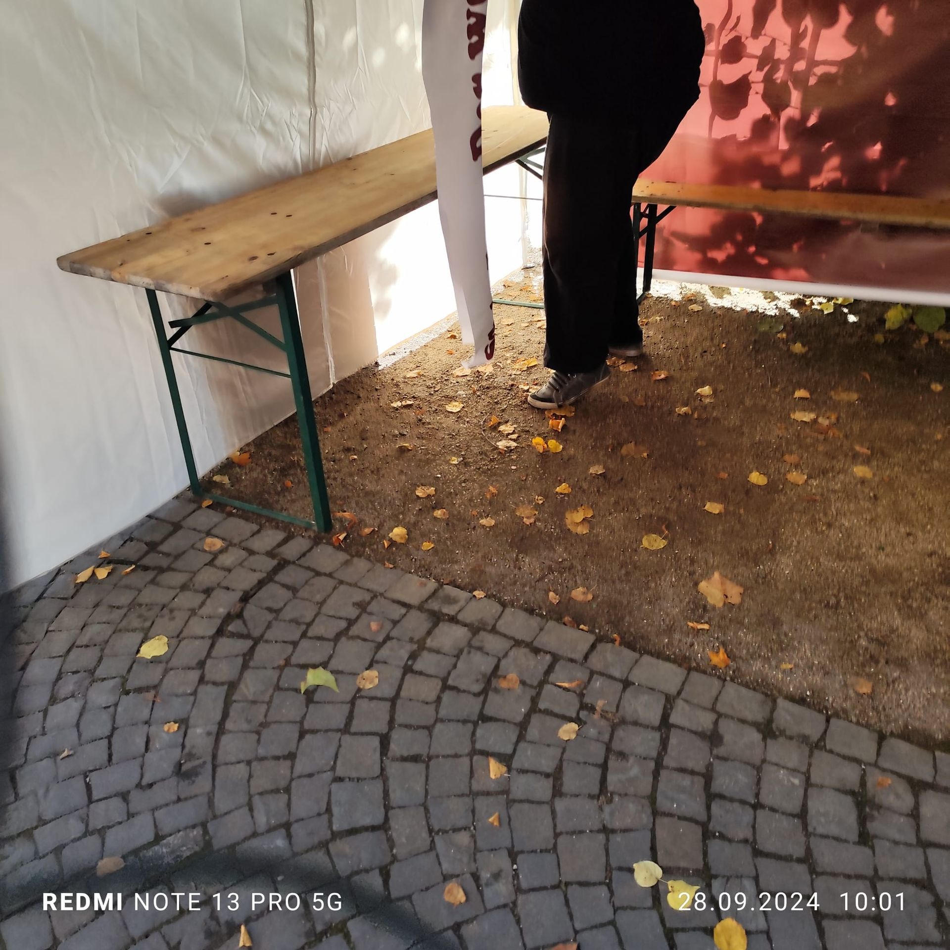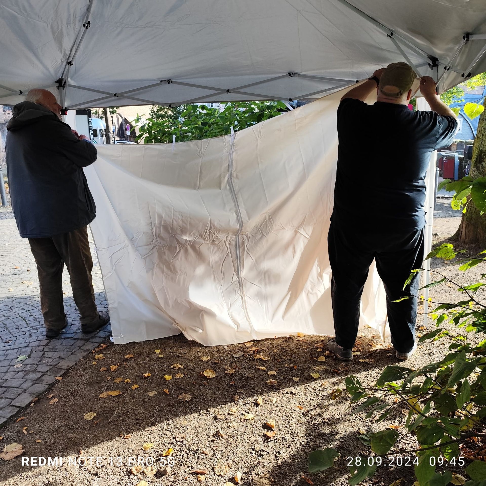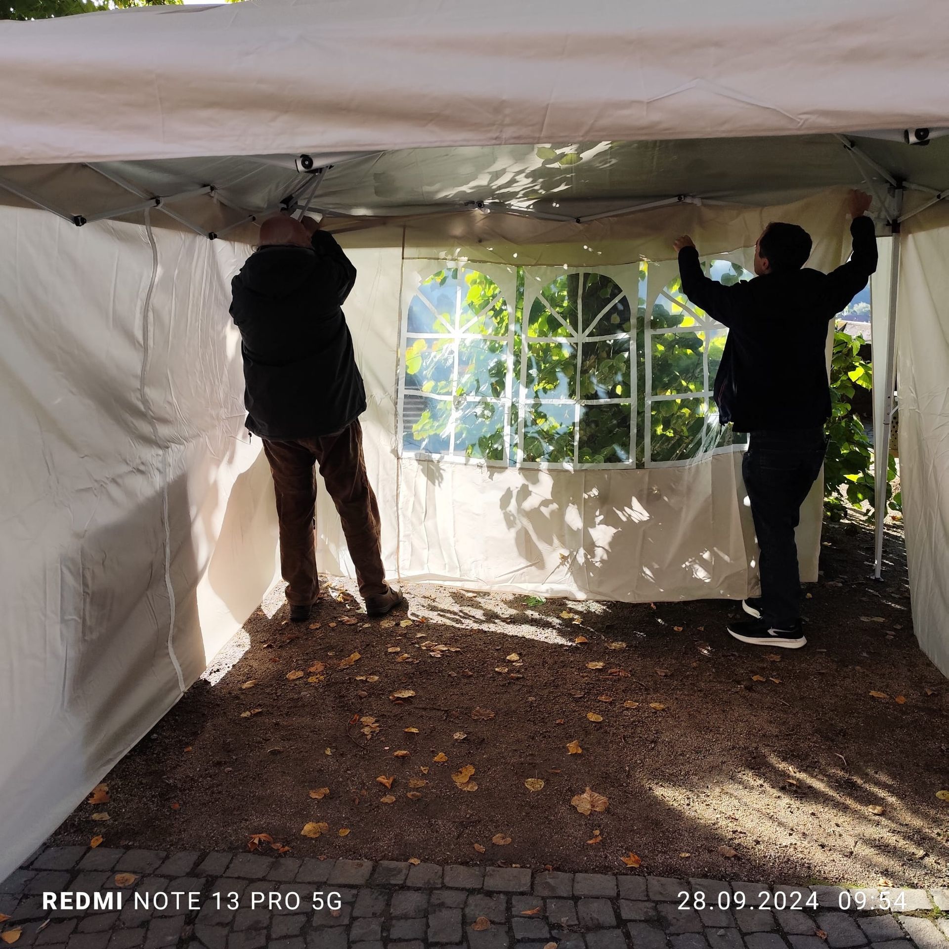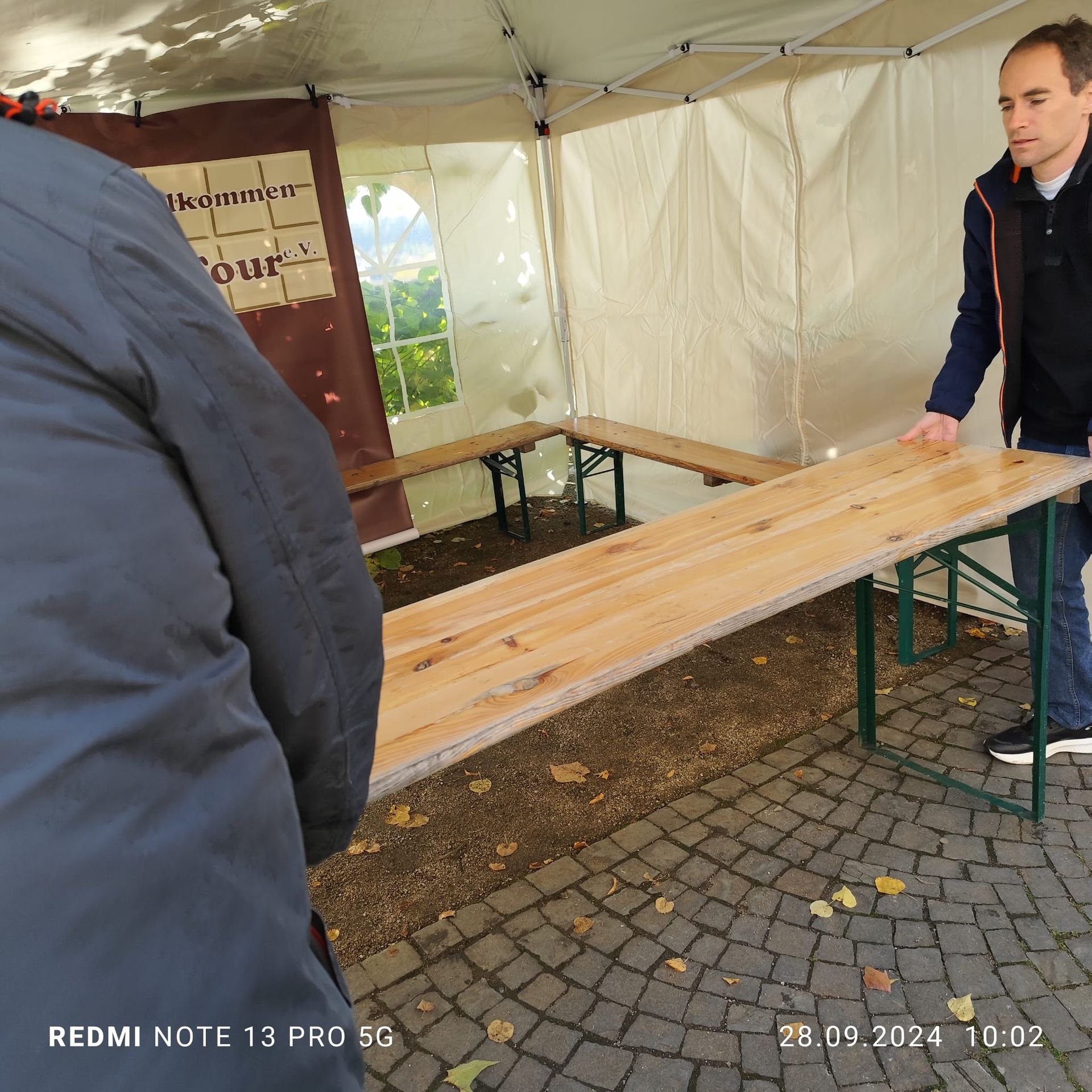 Der Stellplatz von 3x3 Metern wurde uns gestellt und auch Strom bekamen wir zugesagt. Nur den Pavillon wollten wir nicht mieten - für die Hälfte wurde beim großen "A" schnell Einer eingekauft.