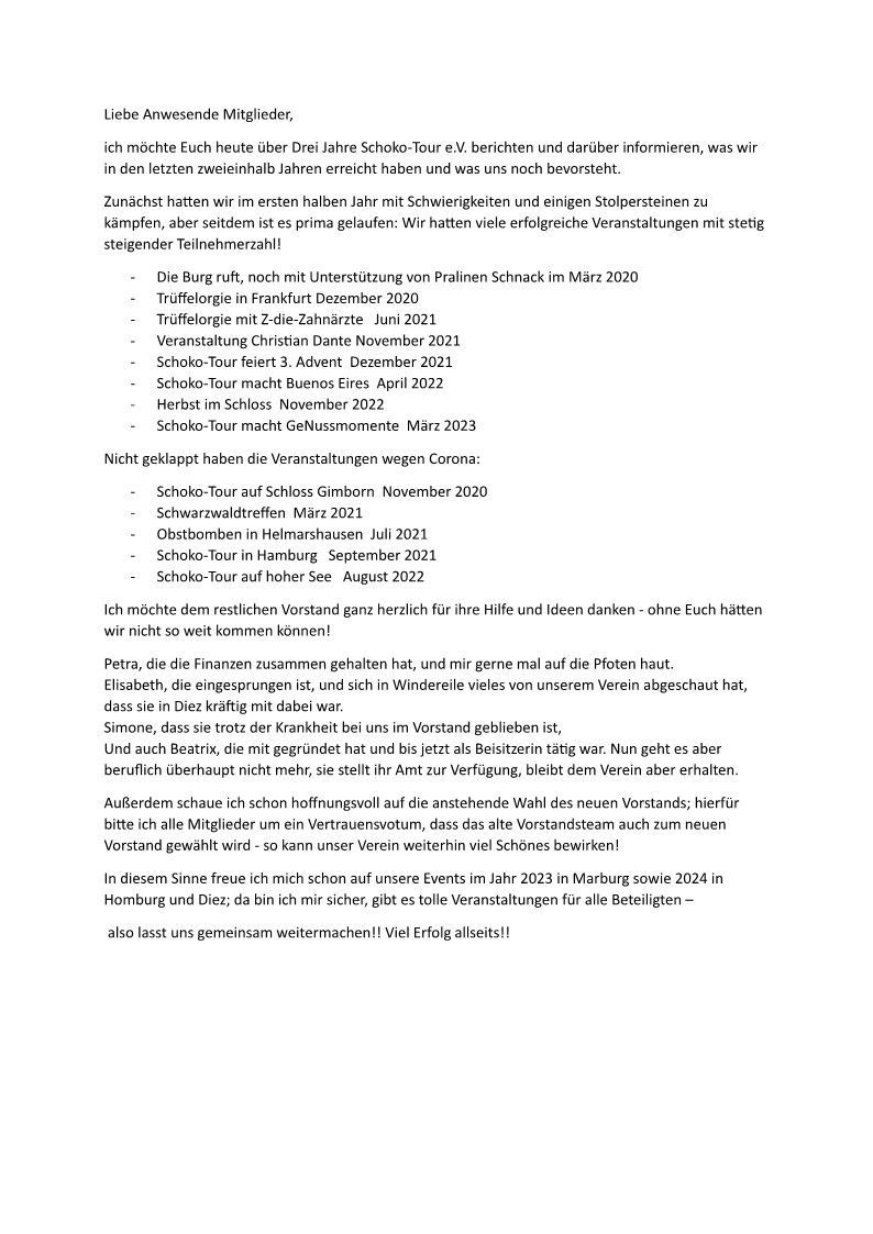 Danach wurden die Tagesordnungspunkte abgearbeitet, der Kassenprüfungsbericht fiel positiv aus, und so wurde der Vorstand entlastet und konnte zurücktreten. ,
