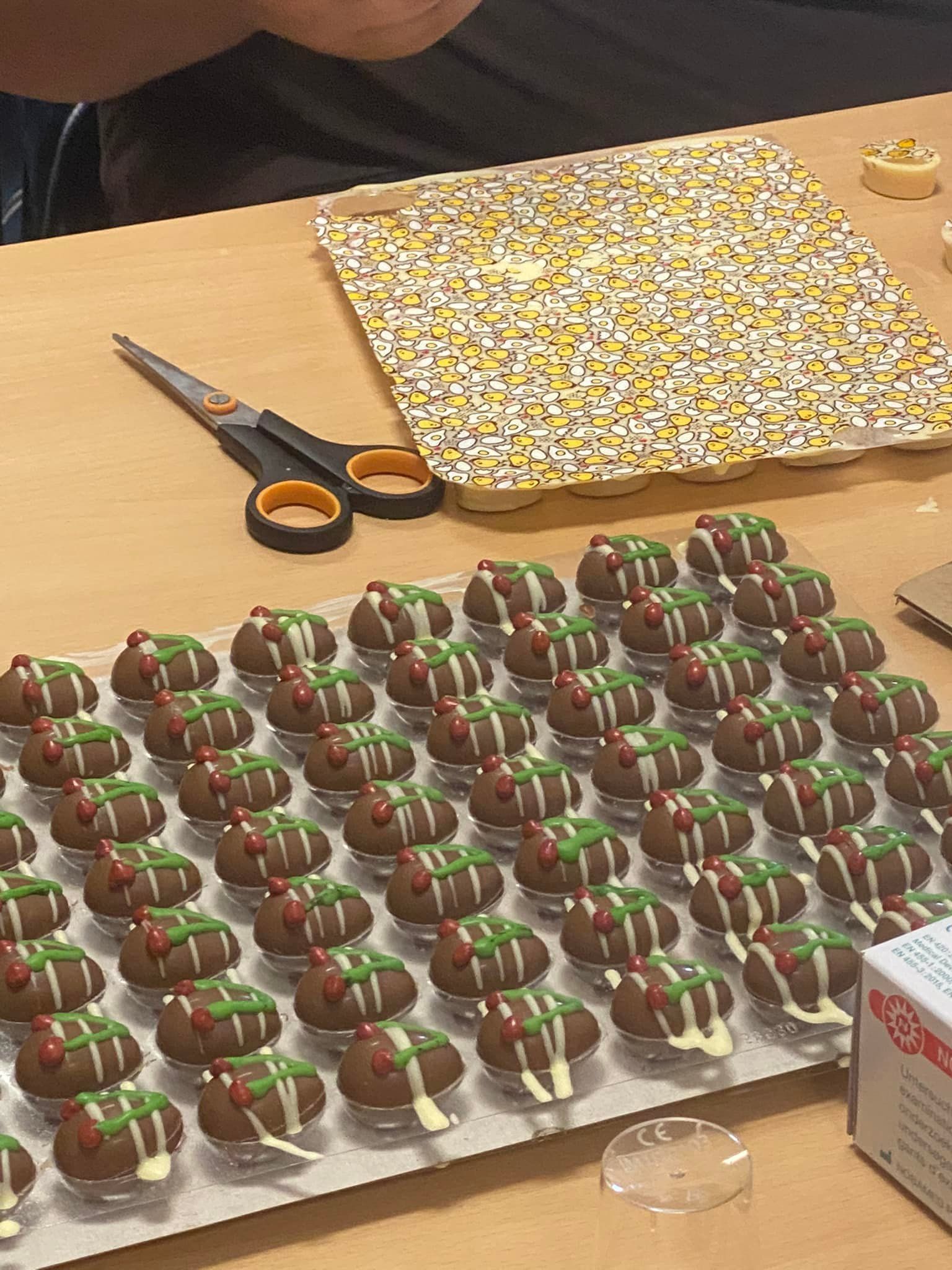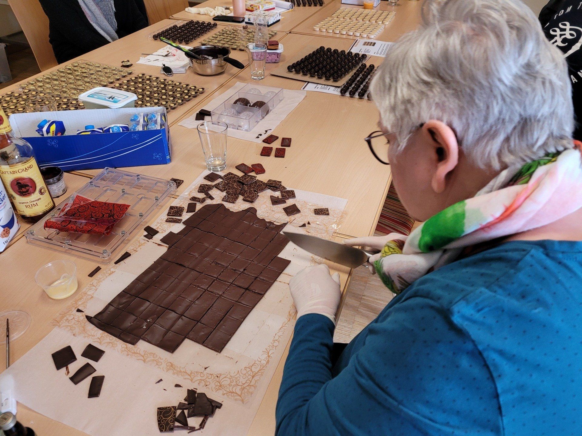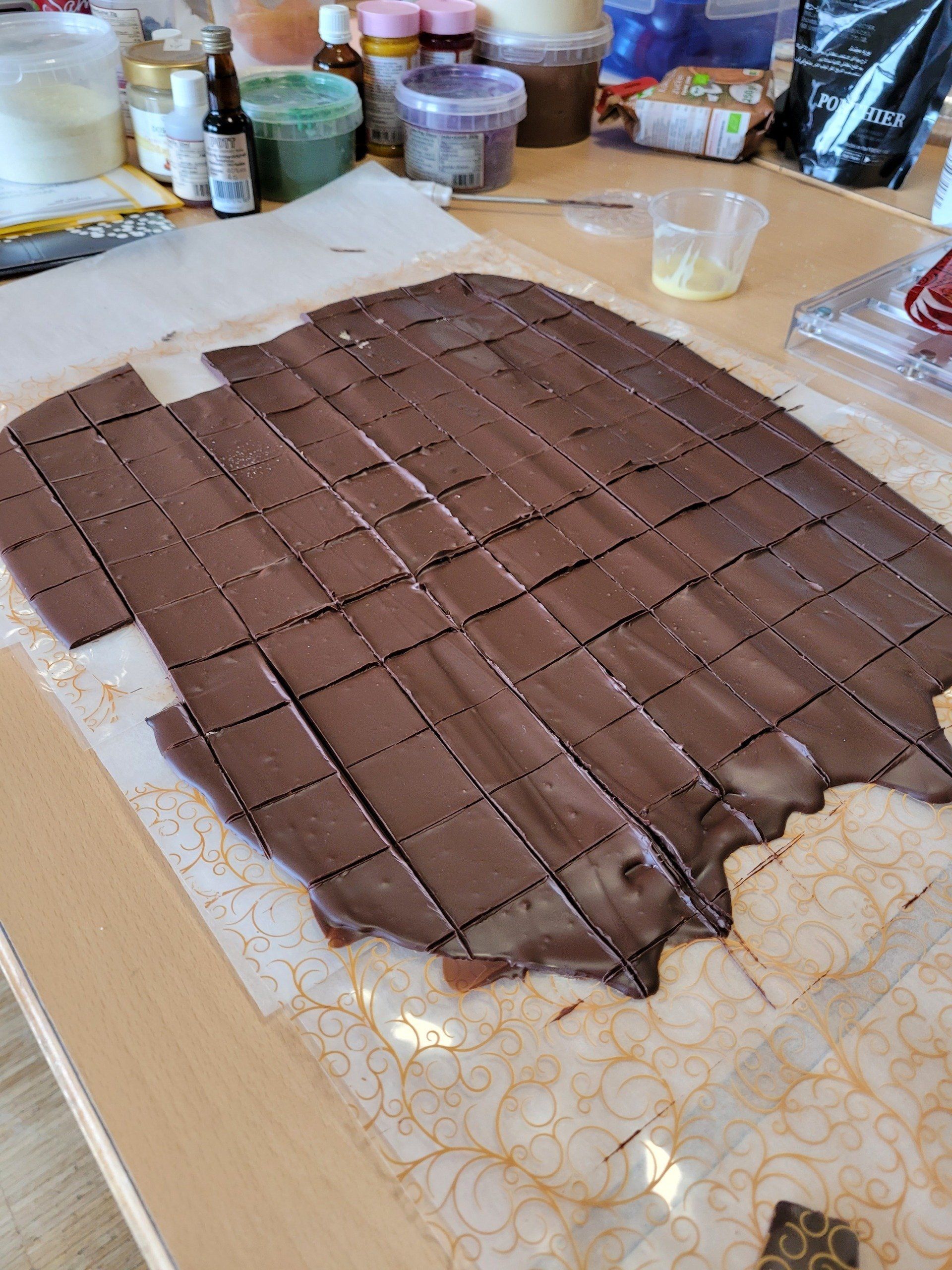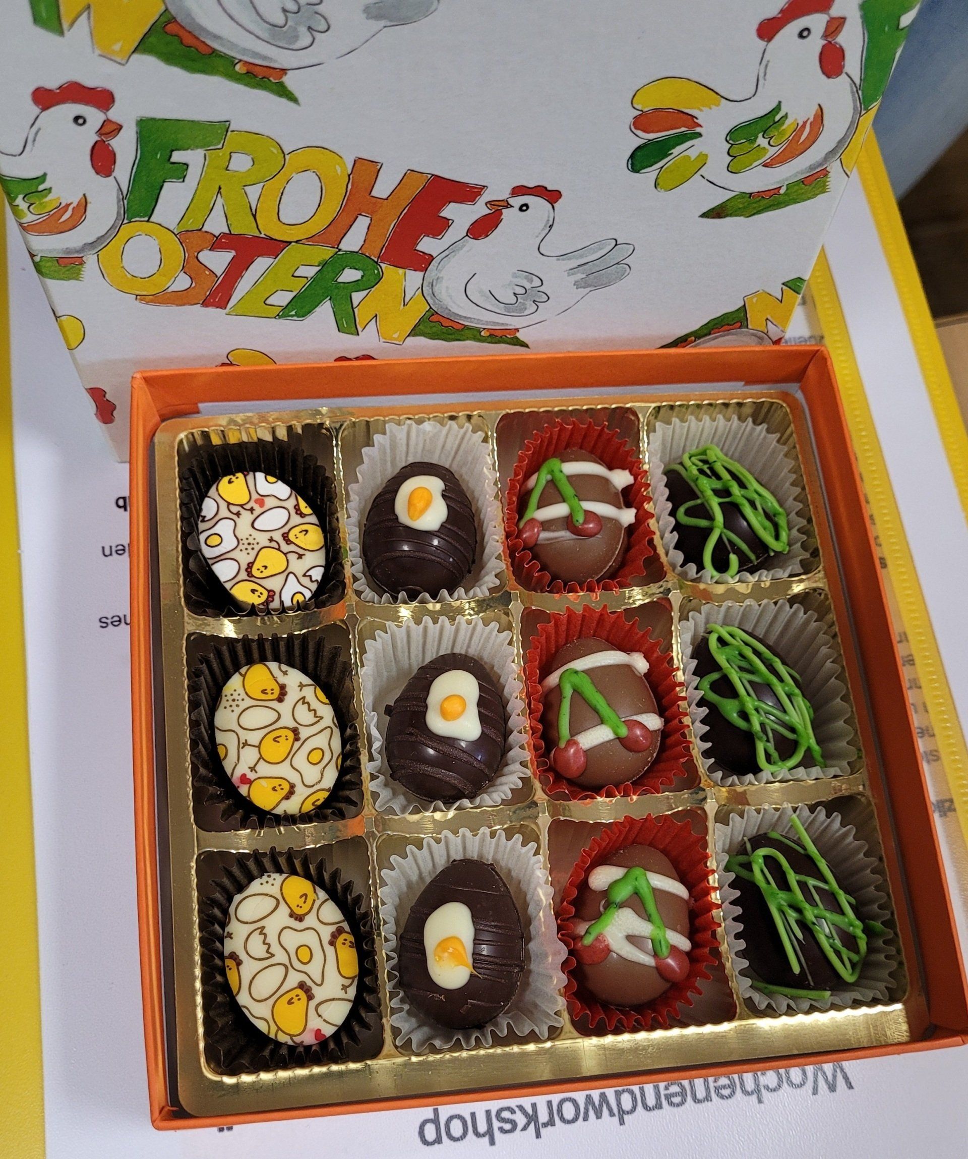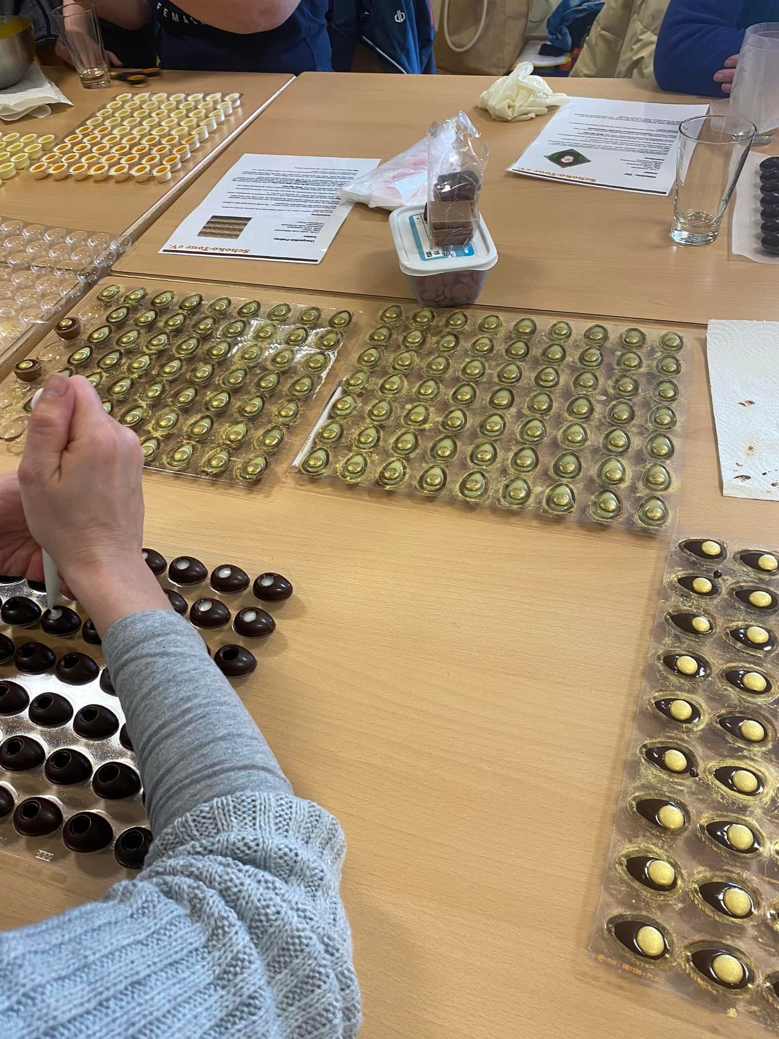 Diesmal waren wir eine etwas größere Gruppe von zwölf Personen und produzierten Ostereier und Fruchtgelee. Dazu gabs den Versuch von Kokoksschokolade... eben einen Versuch.