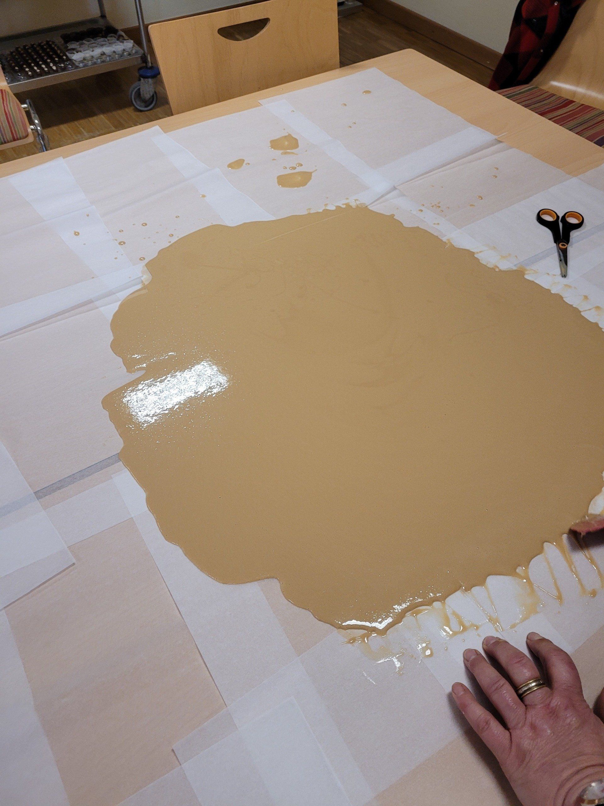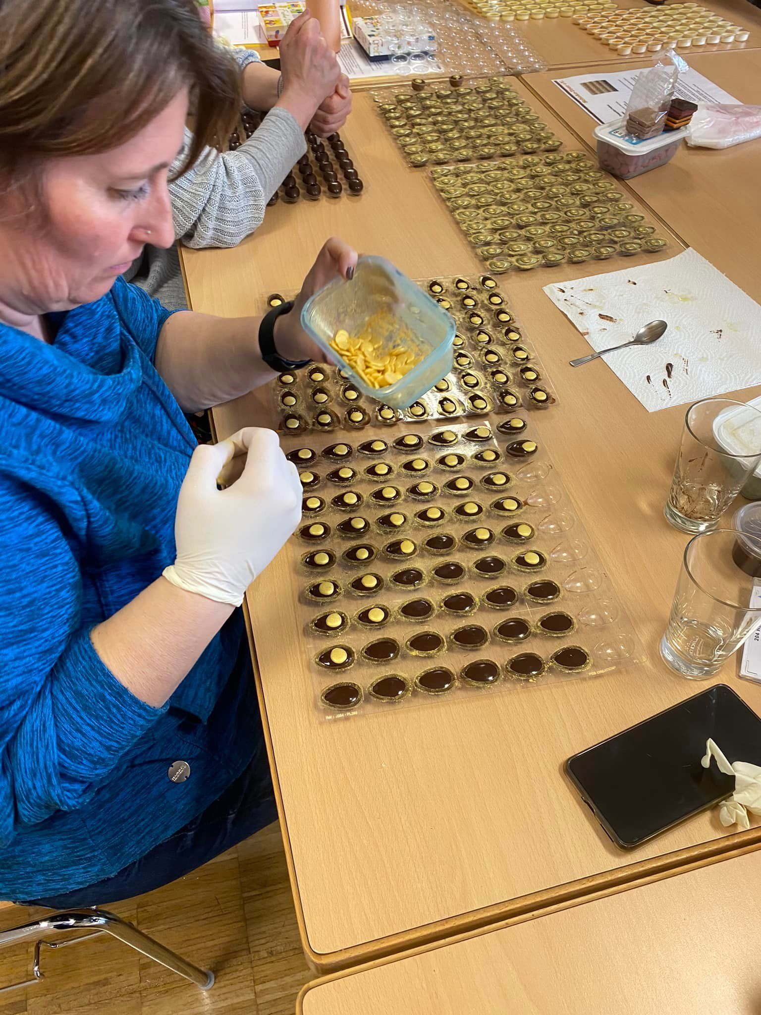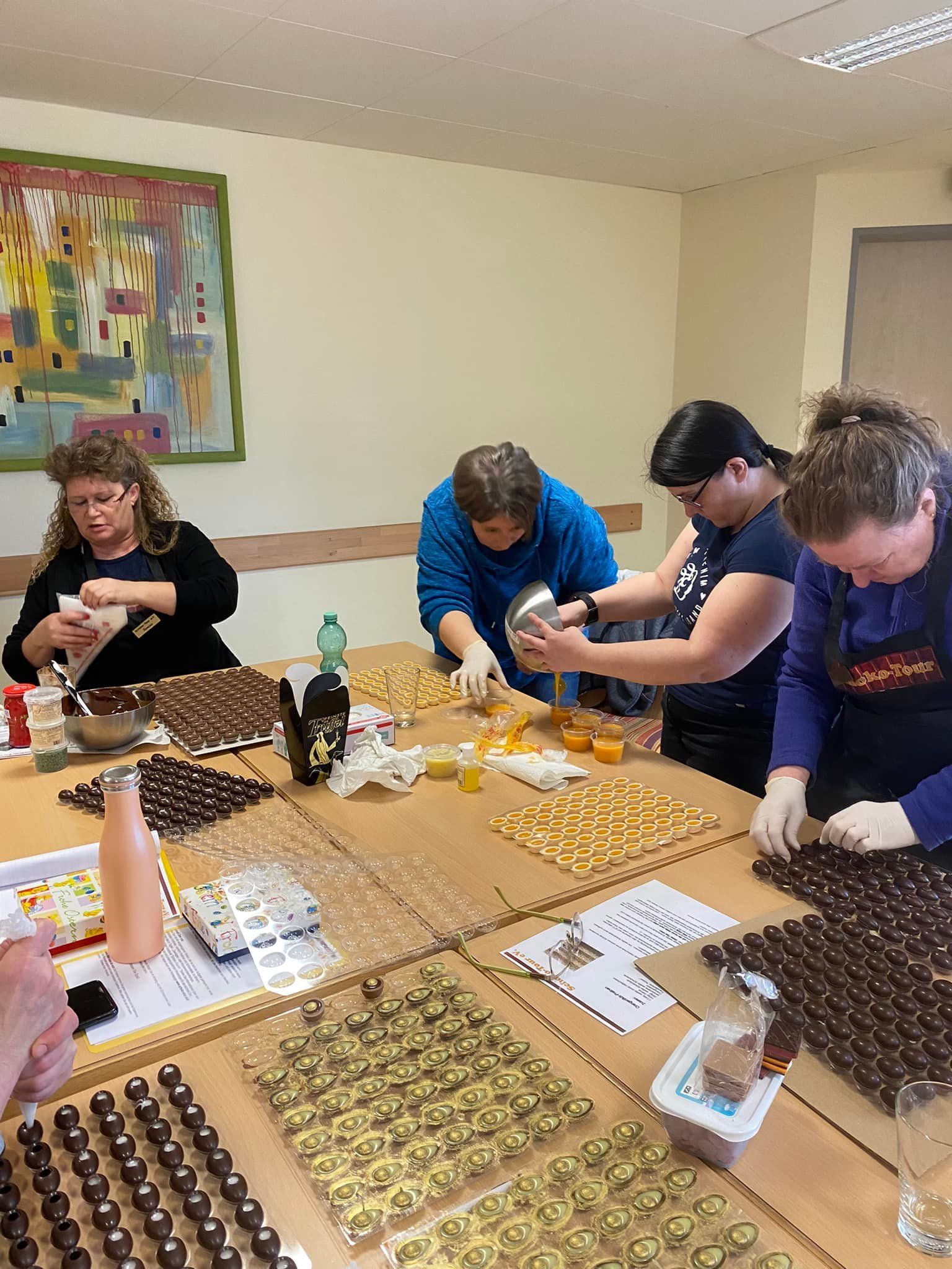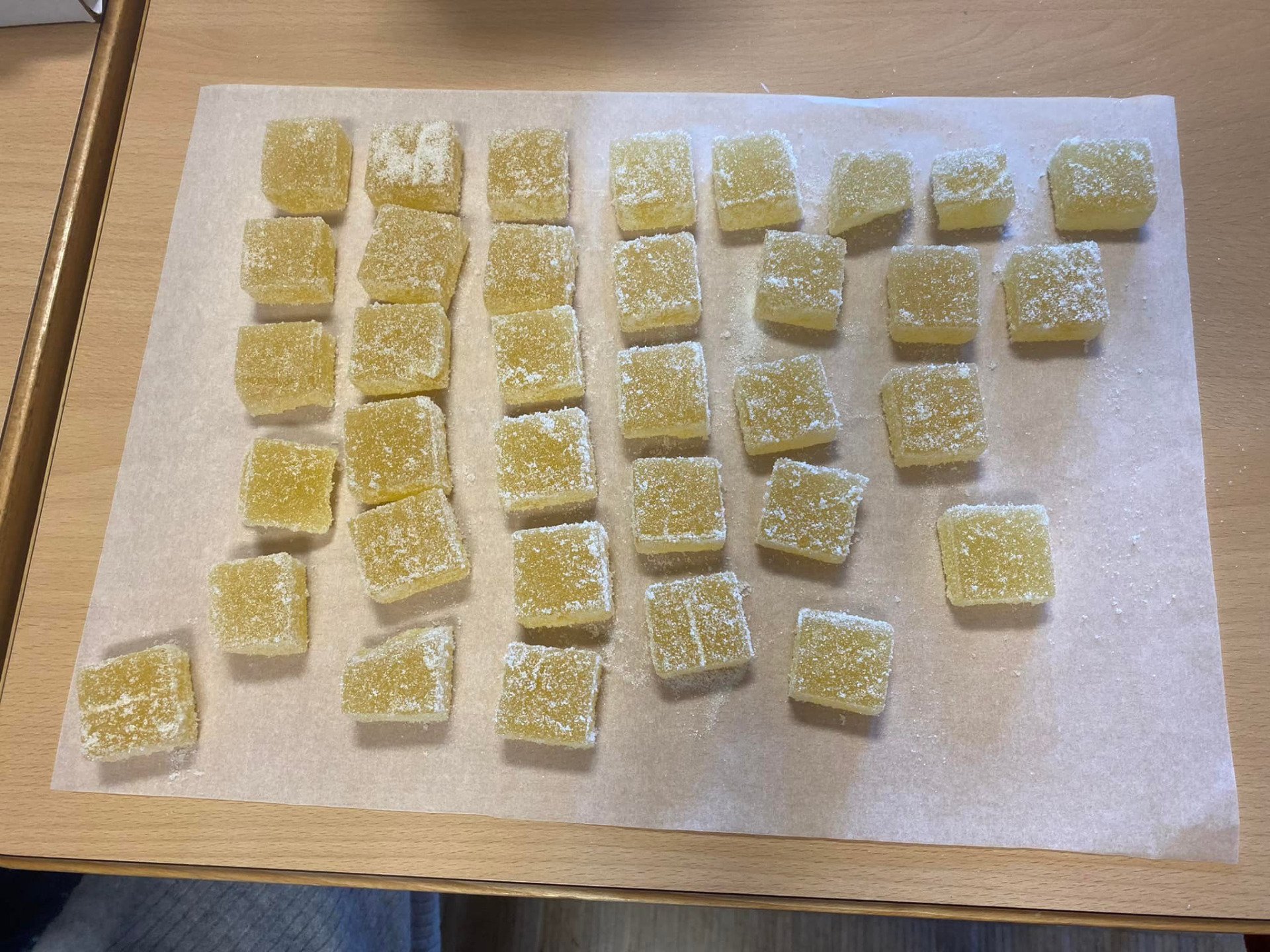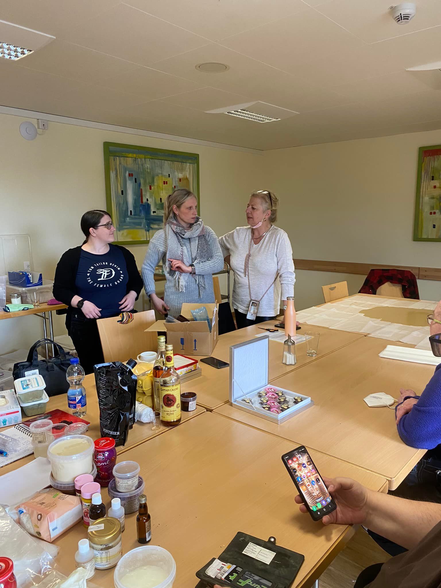 Diesmal waren wir eine etwas größere Gruppe von zwölf Personen und produzierten Ostereier und Fruchtgelee. Dazu gabs den Versuch von Kokoksschokolade... eben einen Versuch.