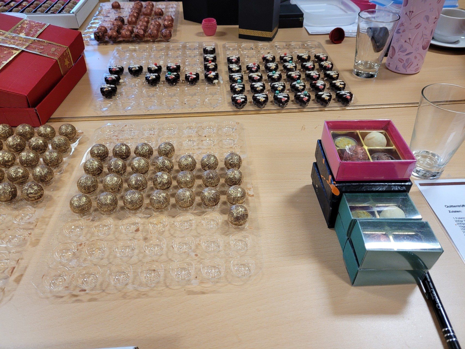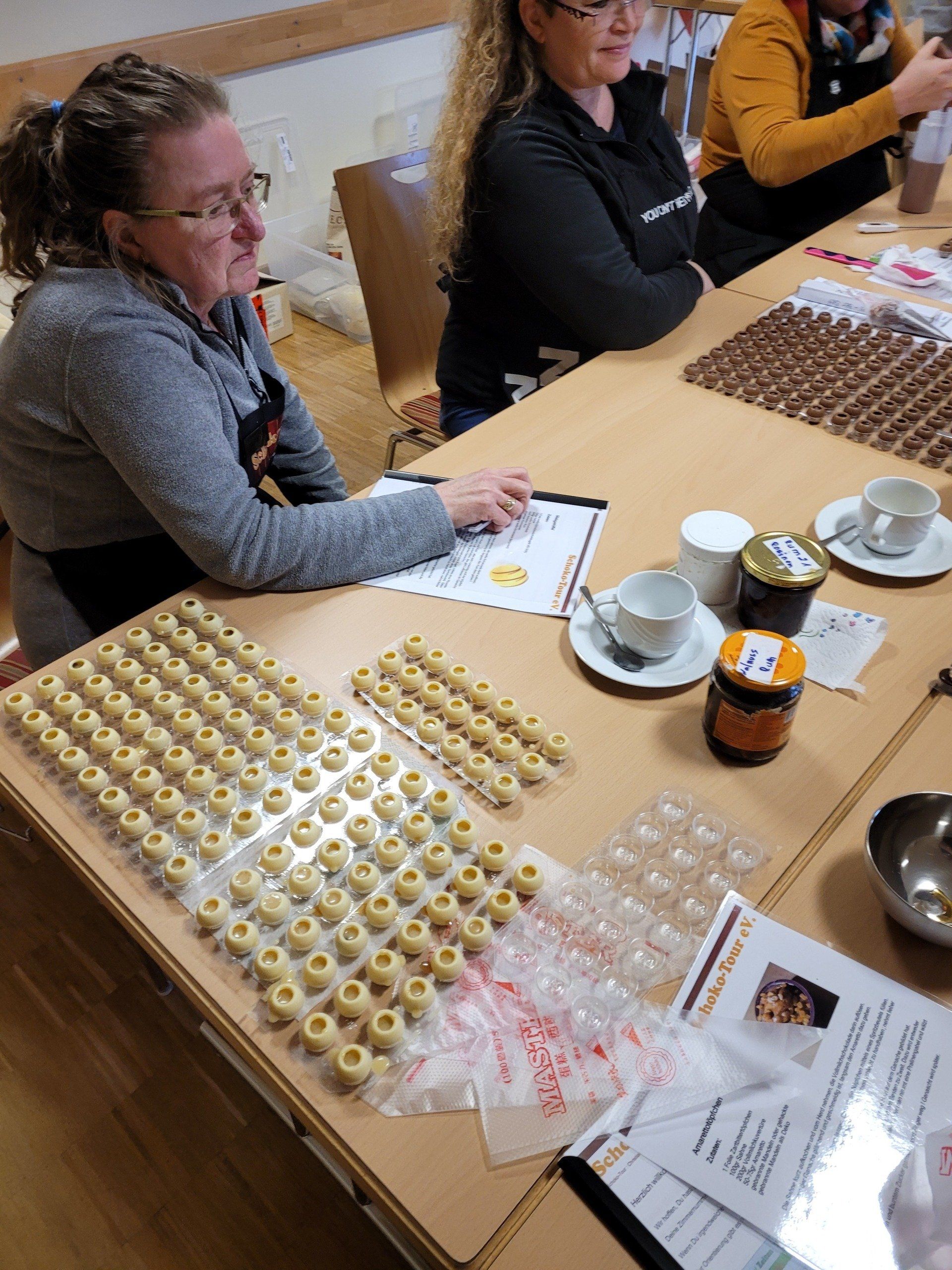 herrlichen Jugendherberge in Homburg/Saar. Trotz der kleinen Gruppe von "nur" acht Personen produzierten wir rund 1000 Pralinen und eine Menge Gelächter.